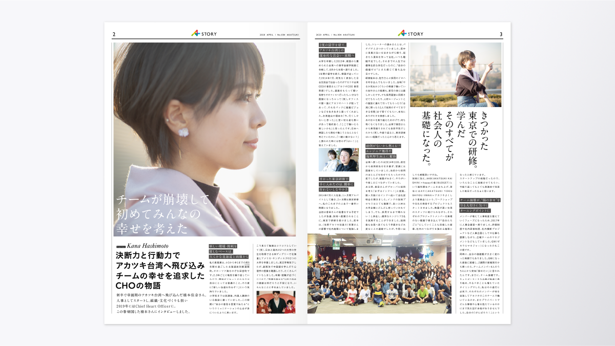 アカツキで働く方々から毎月ひとりにスポットライトを当て、その人だけの物語を紹介する内容。